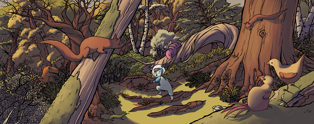I like drawing a lot of things, but my favorite things are environments (especially those with a ton of foliage), character designs, cute animals, and silly comics.
